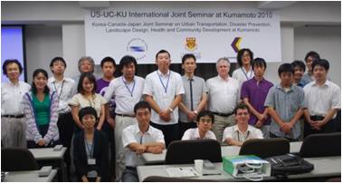 熊本大学工学部社会環境工学科は、2009年2月にソウル市立大学と交流協定を締結し、学術・学生の交流・共同研究を進めています。この関連で、ソウル市立大学・熊本大学の2大学の合同セミナーが2009年2月に熊本で開催され、同年9月にソウル市立大学がカルガリー大学と共同で開催していた研究発表会に熊本大学も参加し、3大学共同セミナーがソウルで開催されています。この3大学共同セミナーの継続として、2010年8月の今回は熊本大学が主催したものです。来年度はカルガリーでの開催が予定されています。本共同セミナーの開催によって、今後の国内外・研究分野間のネットワークの強化、共同研究の一層の推進が期待されます。