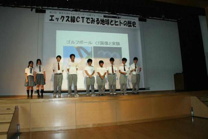 研究発表の部では,広安西小学校科学部とマリスト学園科学部の生徒に発表していただきました。