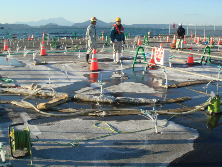 この工事は,八代港の増進に伴う周辺地盤の改良を行う工事でした.