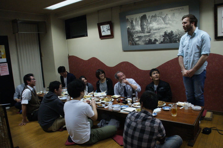 平成25年4月11日(金) 今年配属された4年生と編入生の新入生歓迎会が開かれました。 場所は椋木先生に縁のある紅丸。 栄養満点のおいしい料理と供に先輩方、先生方と親交を深める事ができました。 今年配属された4年生、編入生、先生方と供に、これから1年間頑張っていきたいと思います。