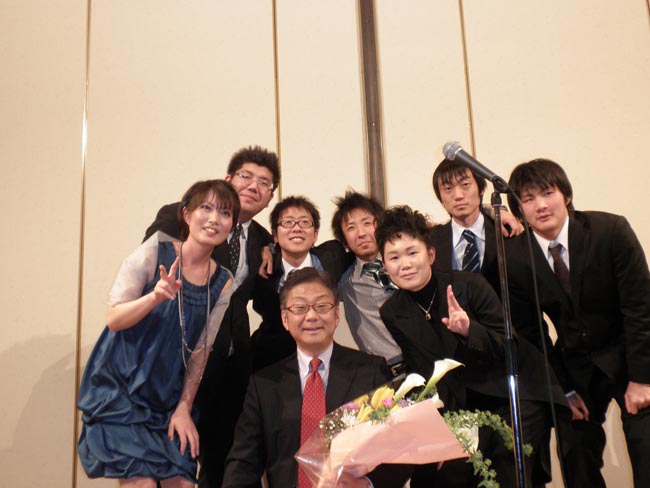 夕方からは先生方への在学期間中のお礼を込めてホテルキャッスルで謝恩会が開催されました.学部生は4年間,院生は6年間の大学生活, 特に研究室での大変だった研究とすばらしい仲間との生活を思い出しながら懇親しました.