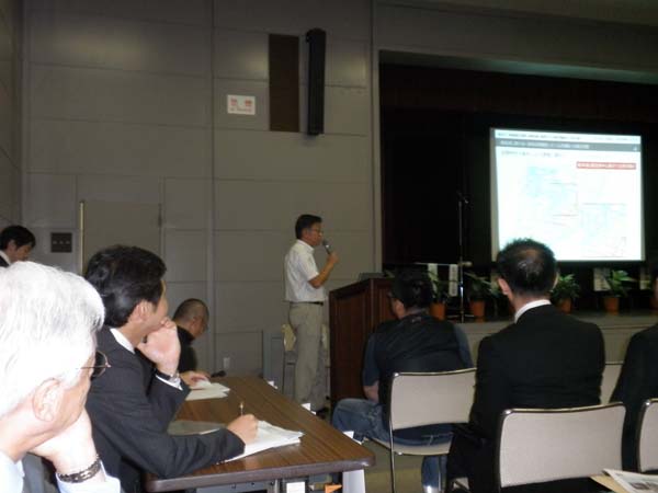 9月11日(土)13:30~17:30に熊本市役所14階大ホールで開催された(社)日本不動産学会設立25周年記念シンポジウム「九州新幹線全線開業と熊本都心のまちづくり ~途中駅のまちからハブ機能のまちへ~」で溝上教授が「市街地における都市空間構成と人の活動の現況把握」と題した研究報告を行いました. その後,幸山市長や石原JR九州会長などをパネリストとして,「これからどうする熊本都心のまちづくり」をテーマとしたパネルディスカッションが行われました. そこでは,固定資産税の軽減によって立地が進み,社会的便益も税収も増加するといった中心市街地の低・未利用地の有効利活用支援策を提言しました. 会場には200人を超える市民が参加し,研究報告やパネラーの発言に熱心に聞き入っていました.