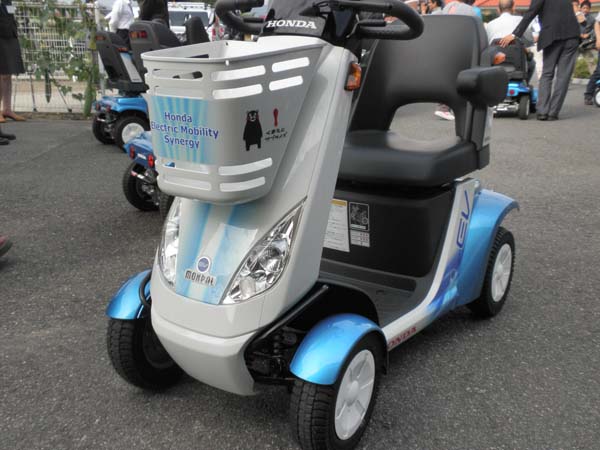 熊本県と本田技研工業(株)との包括協定に基づいて実施される「次世代パーソナルモビリティ電動カート『モンパル』」の実証実験開始セレモニーが, 天寿園で行われました.「モンパル」は高度でお洒落な電動カートで,最高時速6km/hで公道を走行できます.委員長を務める次世代パーソナルモビリティ推進委員会では, モンパル10台を高齢者施設天寿園,植木健康福祉センターかがやき館,有料老人ホームケアハウス下通りに導入し,GPSで位置・走行情報を把握して, 高齢者の活動範囲やQOL向上への貢献度を評価することにしています.