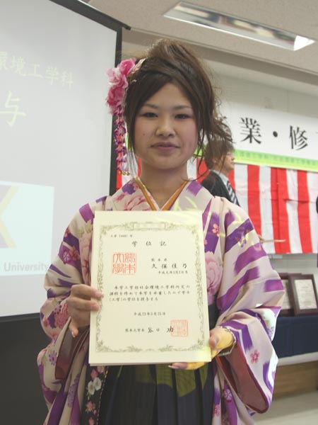今年も3月25日に修了式・卒業式が開催されました.修了生は2人,卒業生は4人,計6人の新たな環境への旅立ちです. 院生は熊本市と日本工営に,学部生は肥後銀行と佐電工と熊本市,残念ながら大学院進学は1人です. その他に,巨体のM1が熊本市に合格して中途退学します.