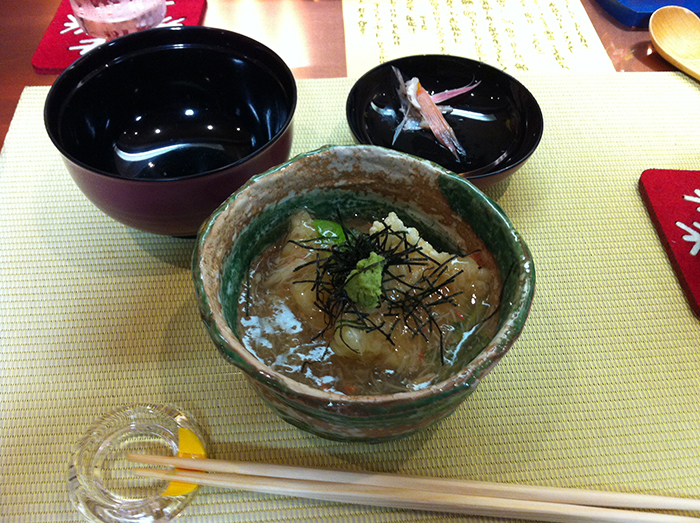 所用で金沢大学を訪問した際,高山先生に会席料理を馳走になりました.創作会席だそうですが,メニューと一品ずつをご覧ください.旨そうでしょう.いや,本当に美味しかった.しかし,黄色の割烹着がご主人ですが,修行中の板前さんも割烹着の色もすごいでしょ.金沢は文化も食も奥が深いですね.