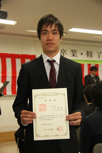 今年も3月25日に,修了式,卒業式が行われました。研究室からはM2の一本くん、緒方くん、松本くん、4年生の石野くん、川口くん、山崎くんの6人が巣立ちました。