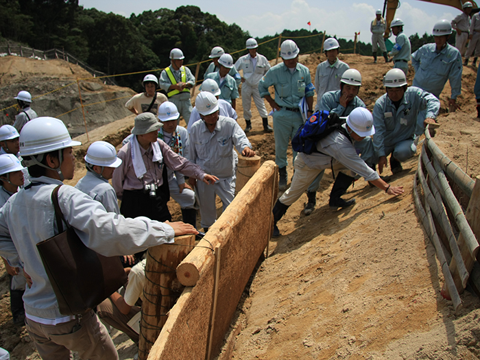 分水路の掘削によって生まれる長大法面は、滝の景観を崩してしまうのではないかという課題があった。そこで、学識経験者・市長・地元商工会・観光協会の関係者・地元住民の代表計13名で構成される「曽木の滝分水路景観検討会」が設立された。